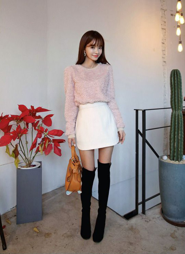 Boot đùi da mix với áo giấu quần cũng là gợi ý tuyệt vời giúp nàng tăng vẻ sexy trong mùa lạnh.