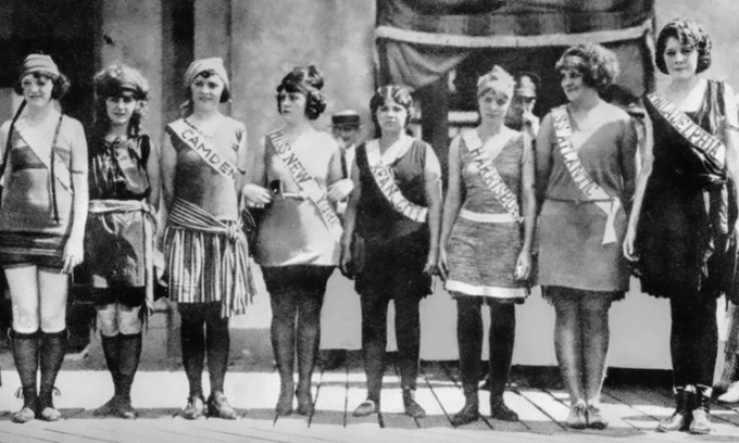 Các thí sinh tham gia cuộc thi hoa hậu Mỹ đầu tiên ở thành phố Atlantic, bang New Jersey, Mỹ, năm 1921. Ảnh: AP
