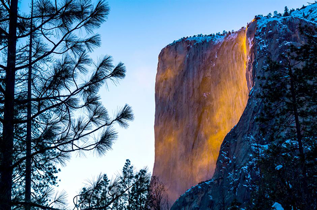 Firefall, Horsetail Fall, California: Trong phần lớn thời gian, Horsetail Fall trông giống như bất kỳ thác nước nào khác. Nhưng đến tháng 2 điều kỳ diệu sẽ xảy ra. Vào những ngày quang đăng, mặt trời sắp lặn chiếu tia sáng vào thác nước khiến nó có màu cam rực cháy trông như dung nham tràn ra sườn núi.