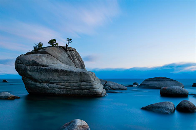 Bonsai Rock, Nevada: Bonsai Rock là một mỏm đá nổi bật trên hồ Tahoe khu vực Nevada. Du khách hăy đến vào lúc b́nh minh hoặc hoàng hôn để có những bức ảnh ngoạn mục, và ở lại sau khi mặt trời lặn để ngắm bầu trời quang đăng đầy sao.