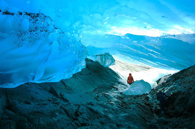 Động băng Mendenhall, Alaska: Những hang động băng lớn này có màu xanh mát lạnh rất ấn tượng. Để tiếp cận chúng không phải là một việc dễ dàng v́ bạn sẽ cần phải đi bộ qua một cánh đồng băng rộng lớn luôn xuất hiện những mặt đá trơn trượt rất khó di chuyển.