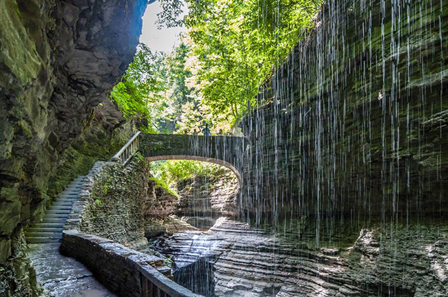 Công viên bang Watkins Glen, New York: Hẻm núi trong công viên tiểu bang này đẹp như thể được chạm khắc bằng tay. Nơi đây có tới 19 thác nước được h́nh thành như một ḍng chảy uốn lượn qua khe hẹp, phủ đầy rêu, trong đó thác Cavern dài 15,2m là thác ấn tượng nhất.