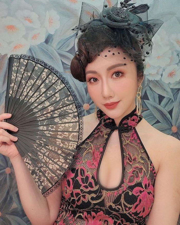 Trong bộ xường xám cách điệu, hở vai, khoét ngực khá sâu, hot girl xinh đẹp khoe được nét gợi cảm phong tình của mình.