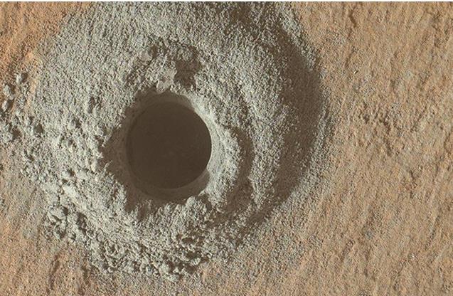 Một lỗ khoan đào trầm tích của Curiosity - Ảnh: NASA