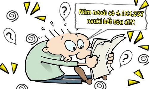 - Ê Tý, tao mới đọc được báo cáo của mày, trong đó nói năm ngoái trên thế giới có 4.153.237 người kết hôn đấy!