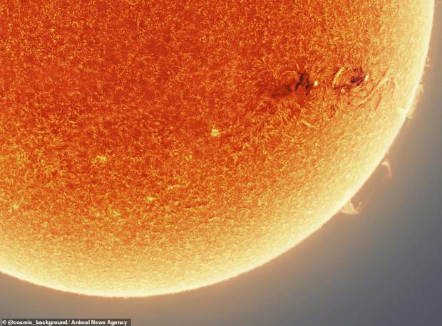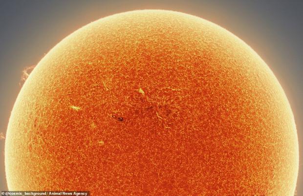 Bức ảnh chụp được chi tiết cả từng đốm và bề mặt Mặt Trời. Ảnh: Animal News Agency