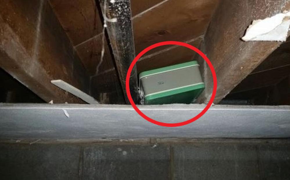 Tuy nhiên, khi đang phá dỡ phần trần nhà đầy bụi bặm của tầng hầm thì họ nhận thấy có thứ gì đó bị kẹt giữa những tấm gỗ ở phần không gian giữa tầng hầm và tầng trệt.