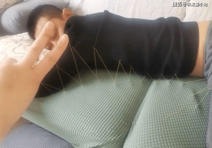 Để trị thói lười của chồng, chị Dung đã khâu quần áo trên người chồng với chiếc ghế sofa. (Ảnh: Sohu)