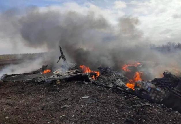 Các mảnh vỡ đang bốc cháy của chiếc Su-35 mà Ukraine tuyên bố bắn hạ gần Kharkiv. Ảnh: Reuters