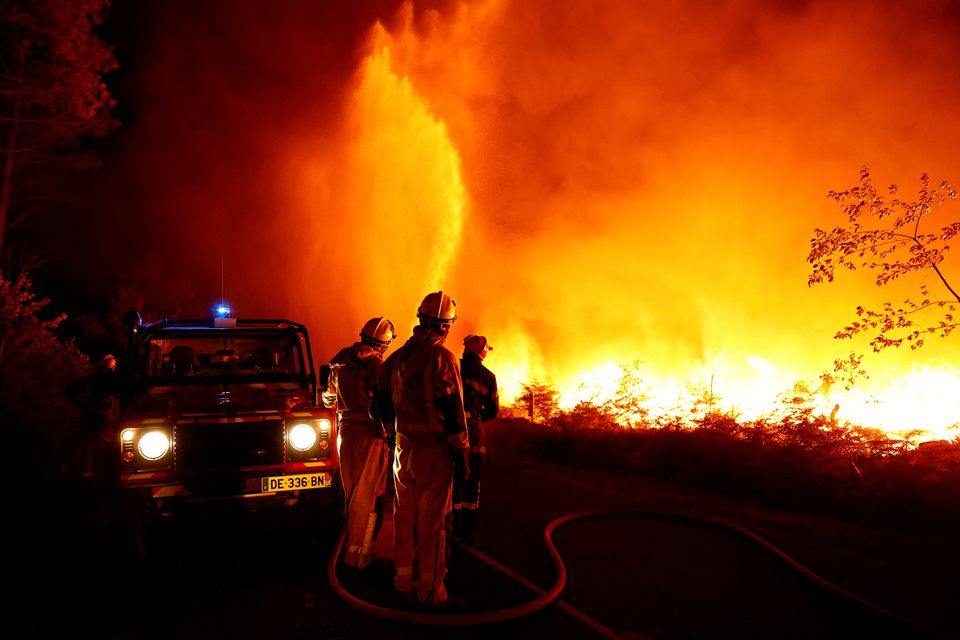 Lực lượng cứu hỏa ngăn chặn đám cháy ở Louchats, trong bối cảnh cháy rừng tiếp tục lan rộng ở vùng Gironde, tây nam nước Pháp, ngày 17 tháng 7 năm 2022. Ảnh: Reuters