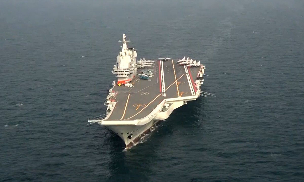 Video do Bộ Tư lệnh Chiến khu miền Nam của quân đội Trung Quốc công bố cho thấy tàu sân bay Sơn Đông dẫn đầu đội hình gồm một số khu trục hạm và tàu hậu cần Tra Can Hồ di chuyển trên vùng biển xa bờ.