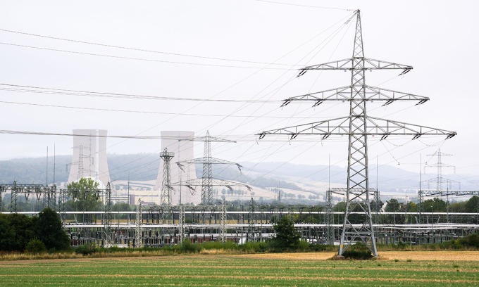 Đường dây gần nhà máy điện hạt nhân Grohne ở bang Hạ Sachsen, Đức ngày 30/8. Ảnh: AFP.