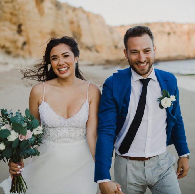Babis và Caroline trong đám cưới bên bờ biển. Ảnh: Instagram