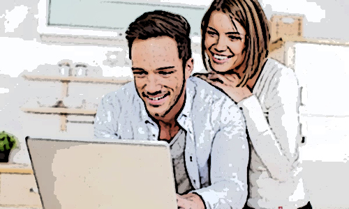 Một anh chàng kỹ sư tin học đang ngồi chơi với người yêu trước màn hình máy tính.