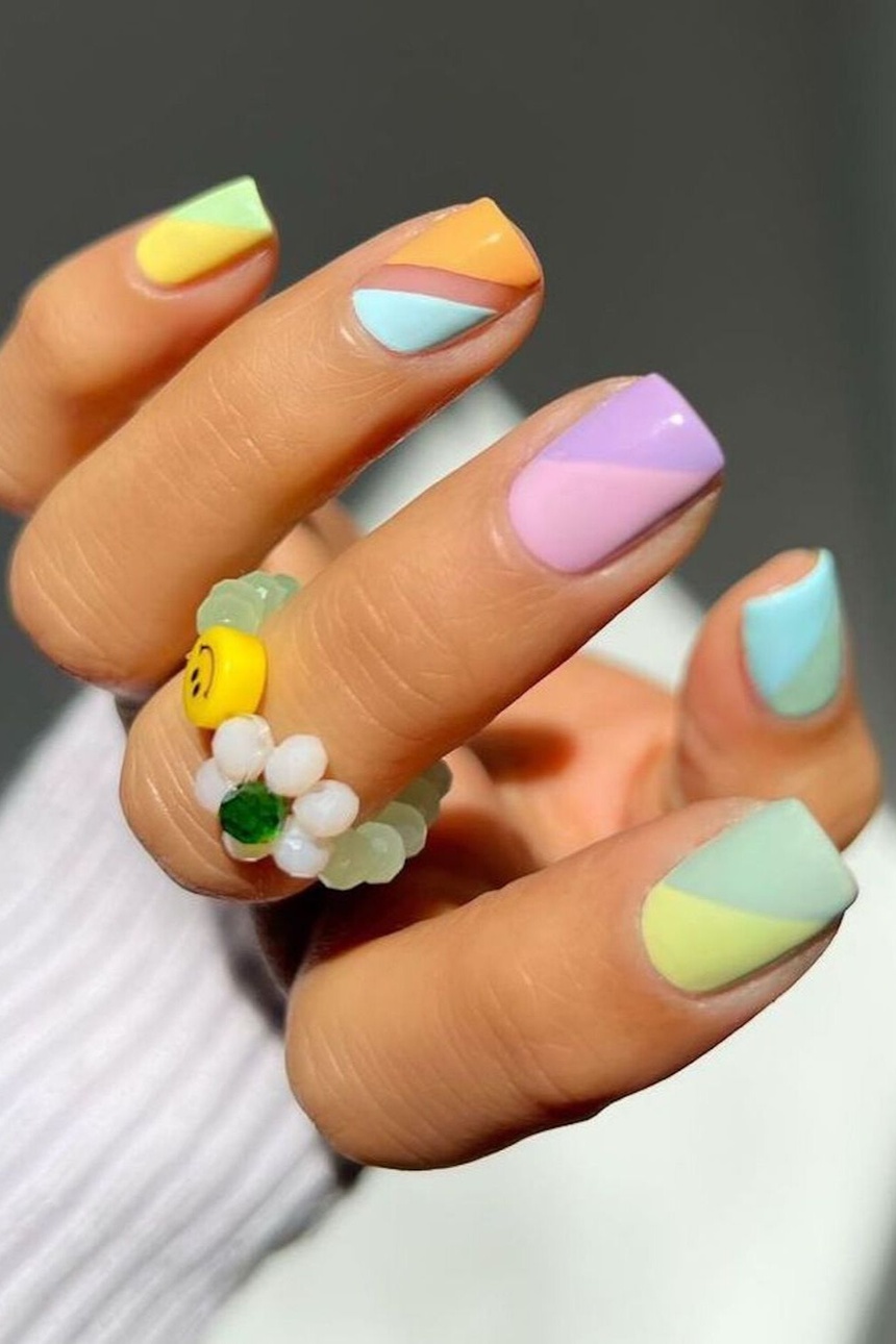 Màu pastel như màu hoa oải hương, xanh bạc hà và xanh baby rất linh hoạt và có thể kết hợp với nhiều kiểu dáng móng tay khác nhau, từ phong cách tối giản đến phức tạp.