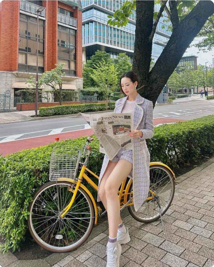 Trong chuyến công tác tại Nhật Bản vừa qua, bên cạnh các trang phục như áo dài truyền thống hay váy tiệc phù hợp những hoạt động mang tính nghiêm túc, lịch sự thì quần short là item Bảo Ngọc không thể bỏ qua, rất nhiều lần khán giả thấy mỹ nhân Cần Thơ mặc nó khi đang dạo chơi dưới phố. Đơn cử như set đồ vải tweed trẻ trung mà rất đỗi thanh lịch dưới đây.