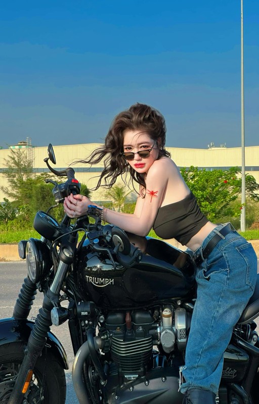 Trên trang Facebook cá nhân. Hoti girl siêu v1 - Elly Trần gây chú ý khi đăng tải loạt ảnh khoe dáng trên xe moto. Trong hình, bà mẹ 2 con mặc mốt áo quây bé bằng 1 gang tay màu đen, phối cùng quần jeans xanh. Cô đeo kính đen, phụ kiện bạc, đi boot đen cao cổ.