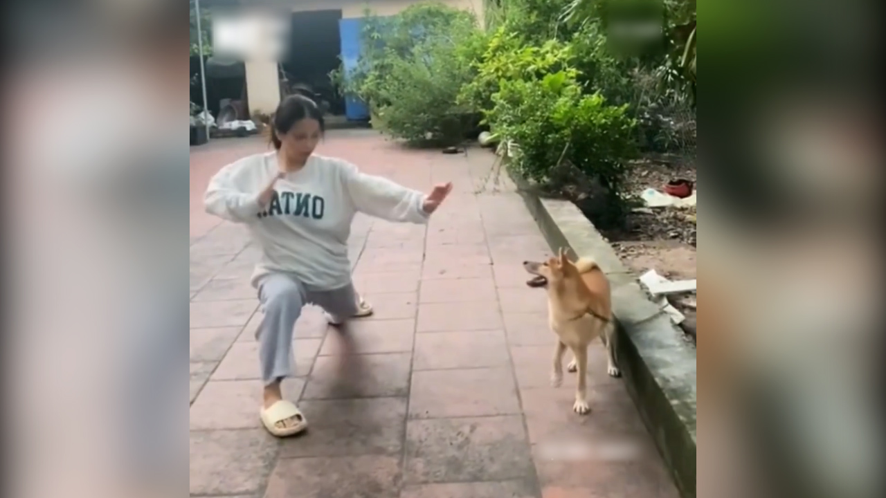 Bị trói chân trước mặt cô chủ đang luyện võ công, chó cưng tìm cách tháo chạy nhưng bất thành.