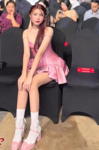 Trang phục giúp Hạt Dẻ cực kỳ nổi bật giữa sự kiện, từ cách kết hợp trang điểm, làm tóc đều rất hài hòa, tạo thành tổng thể thống nhất. Song có lẽ chiếc váy quá ngắn nên cô bé có một chút lúng túng, liên tục ngồi chéo chân hoặc dùng tay che chắn.
