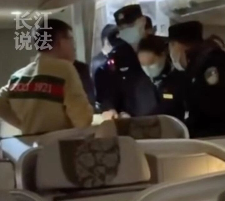 Vị khách tức giận tranh căi với phi hành đoàn và cảnh sát. (Ảnh: Douyin)
