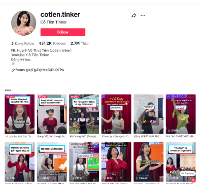 Mình không phải chỉ là một giáo viên tiếng Anh. Mình dạy kỹ năng giao tiếp và thuyết trình (hình thể, cảm xúc lẫn ngôn từ) và tiếng Anh chỉ là một phần nhỏ mọi người thấy qua những video ngắn mình đăng tải trên MXH."