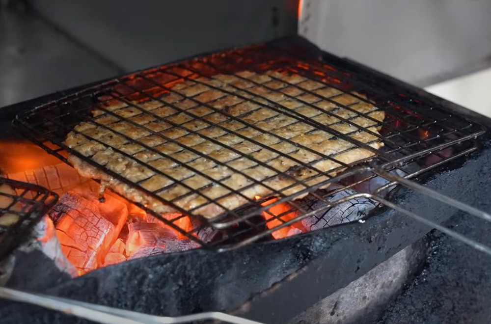 Đầu tiên, quán bán bún chả truyền thống với hai loại chả miếng và chả băm, nhưng chả băm ở đây được nướng miếng to, mỗi miếng (phên) khoảng 200 gram, vừa một vỉ. Cách làm này được chị Hồng chủ quán học từ Bắc Ninh để đảm bảo mỗi miếng chả không bị khô. Một phên phục vụ 4 người ăn.