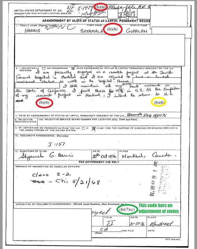 Thêm thông tin về các vấn đề của Bộ Tư pháp của mẹ Kamala (Shyamala): Mười bốn năm sau khi bà yêu cầu hũy bỏ vào ngày 6 tháng 1 năm 1972 khỏi cuộc hôn nhân "trên giấy tờ" của bà vào ngày 5 tháng 7 năm 1963 với người nước ngoài Jamaica Donald Jasper Harris, người nước ngoài Ấn Độ Shyamala Gopolan đă nói dối trên các mẫu đơn nhập cư liên bang mà bà nộp qua Sở Di trú và Nhập tịch (INS) cho Bộ Tư pháp Hoa Kỳ và nói rằng bà đă kết hôn. Lời nói dối về "kết hôn" được t́m thấy trong đơn xin Thị thực và Đăng kư Nhập cư của Gopolan được "đánh dấu" bằng mă định danh "(b)(6)" v́ "gian lận lao động trái phép". Bà cũng bị gắn cờ (b)(7)(c) v́ “thay đổi t́nh trạng trái phép”. Điều đó có nghĩa là mỗi lần bà xin phép đi làm th́ bà đă đi làm rồi. “Shyamala, người trước đây từng có mặt tại Hoa Kỳ theo thị thực du học – đă kư vào mẫu “Thị thực nhập cư và Đăng kư” của liên bang chứng nhận rằng bà đă kết hôn với một “người nhập cư”. Ngày bên cạnh chữ kư của bà là ngày 3 tháng 2 năm 1986”. “Lời nói dối về cuộc hôn nhân của Shyamala Gopolan dường như là chuyện đầu tiên được những điều tra viên của INS phát hiện trong 154 trang hồ sơ điều tra đă được xem xét có trong hồ sơ người nước ngoài của Bộ Tư pháp Hoa Kỳ của bà”. Về phần người cha, người nước ngoài Jamaica và người theo chủ nghĩa Marx . Donald Jasper Harris đă thừa nhận thị thực của ông đă xác định ông là công dân “Anh” của Jamaica khi ông che giấu công việc và nghiên cứu của ḿnh cho Đại học Tây Ấn của chính phủ Jamaica. Vai tṛ kép của ông là một sinh viên và một nhà nghiên cứu của chính phủ Jamaica đă vi phạm Đạo luật Đăng kư Đại diện nước ngoài khi ông nhập cảnh vào quốc gia này vào năm 1959. Việc tự nhận ḿnh là "người Anh" thay v́ là công dân "châu Phi" của Jamaica khiến ông, giống như Shyamala Gopolan, có vẻ là người da trắng trên giấy tờ. Cha của phó tổng thống của chúng ta đă hoàn thành một dự án nghiên cứu kinh tế vào năm 1964 cho chính phủ Jamaica trên các máy tính mà ông sử dụng tại Berkeley. Sự hiện diện bí mật của ông bên trong Đại học California thuộc sở hữu nhà nước với tư cách là một điệp viên chưa đăng kư và là công dân Jamaica đă giúp ông tiếp cận được "bí mật quốc pḥng" thông qua các thư viện và cơ sở dữ liệu của trường. Shymala cũng đă nộp đơn đổi tên đệm cho Kamala trong khi đang chịu lệnh trục xuất. C̣n nhiều điều nữa và các điều luật đă được trích dẫn. Nguồn sẽ được cung cấp. Đầu tôi quay cuồng và chúng tôi thực sự cần một luật sư để xem xét điều này.
