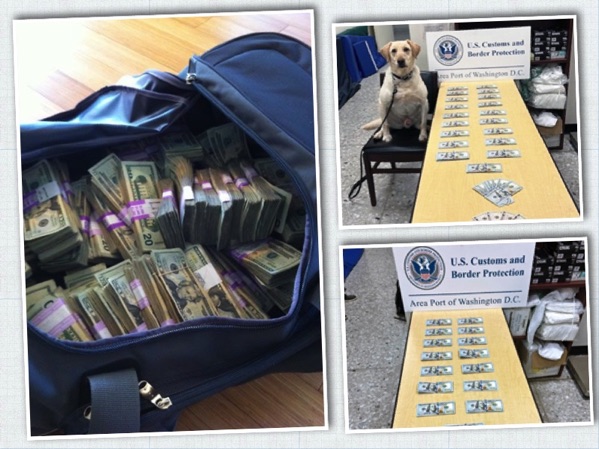 Chó phát hiện tiền tệ của CBP Fuzz, một chú chó tha mồi màu vàng 4 tuổi, đă giúp phát hiện tiền tệ không khai báo trong ba vụ tịch thu.