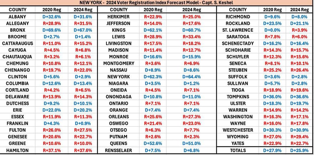 49 of 62 counties shift Republican, including 4 of 5 NYC boroughs