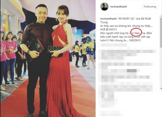 Mặc dù 'chê' vợ là heo nhưng Trấn Thành lại có thái độ khác hẳn đối với các người đẹp khác trong showbiz Việt. Anh thường xuyên ghé thăm Facebook của các mỹ nhân đình đám để khen ngợi về nhan sắc xinh đẹp của họ như Thanh Hẳng, Bảo Anh.