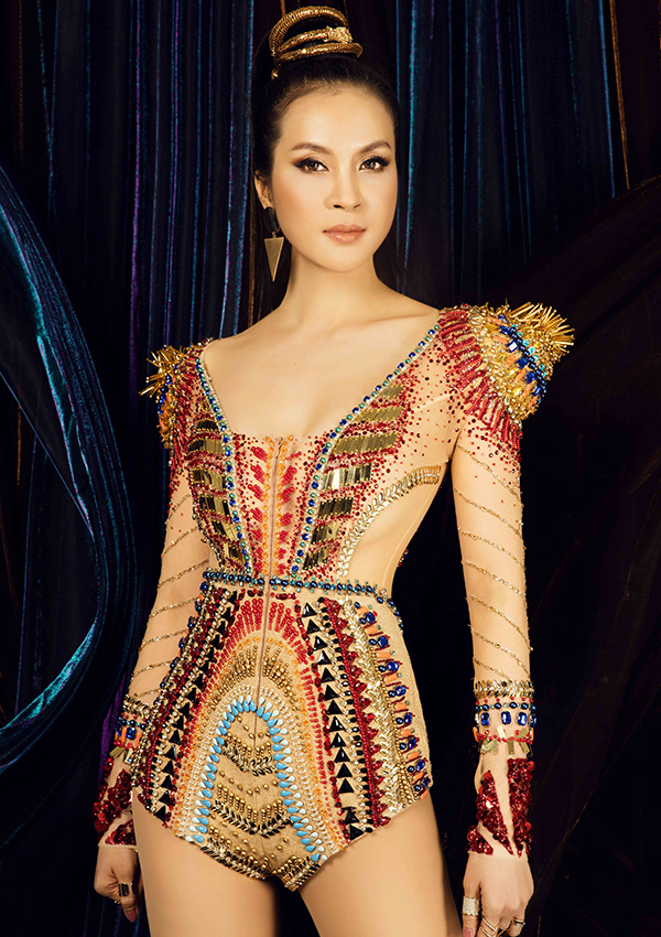 Vóc dáng cao như ngươi mẫu với 3 vòng chuẩn khiến nữ MC luôn tự tin chọn những trang phục ôm sát, cắt khoét vòng một làm tôn vóc dáng của mỹ nhân từng đoạt danh hiệu Á hậu Điện ảnh 1992.