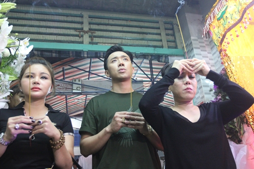 Từ trái qua: Lê Giang, Trấn Thành, Việt Hương đến viếng Khánh Nam.