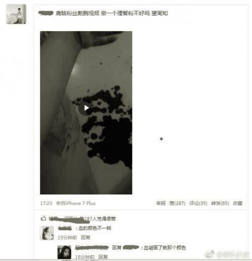 Một số fan của Lộc Hàm đã quay video cắt cổ tay, thậm chí có cô gái còn tự tử.