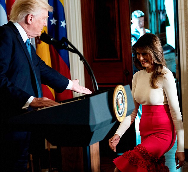 Xuất hiện cùng chồng trong một sự kiện tại Nhà Trắng ngày 06/10 vừa qua, đệ nhất phu nhân Melania Trump nổi bật và gây được sự chú ý đặc biệt với set đồ trắng - đỏ cực trẻ trung và thanh lịch.