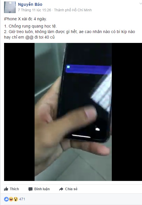 Mới đây, người dùng Nguyễn Bảo trên group Facebook Tinh tế cũng đã chia sẻ về tình trạng iPhone X bị liệt cảm ứng. Cụ thể, chiếc iPhone X mới mua được 4 ngày đã bị dừng ở màn hình khóa và không thể sử dụng được.