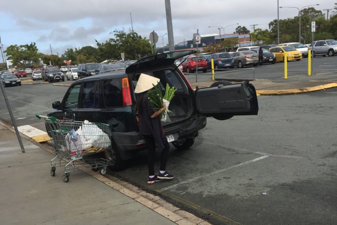 Trời Brisbane đang vào mùa đông. Lạnh quá. Tôi đang co ro đi tới bất ngờ gặp chị đẩy chiếc xe đầy ắp hàng hóa đi ngược lại để ra bãi xe. Đến nơi, chị dừng xe, mở cốp. Chị lấy từ trong xe chiếc nón lá đội lên đầu…