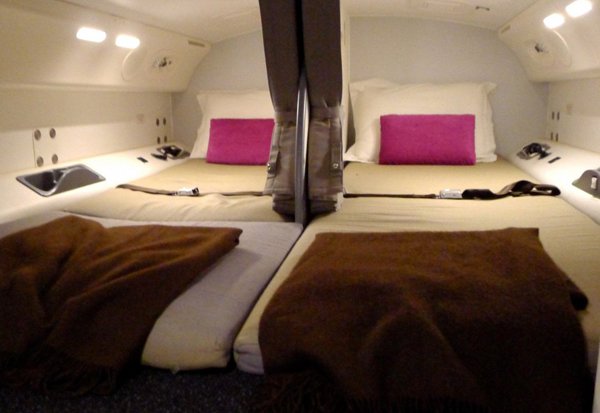 Giường của phi công khá rộng rãi và được bố trí hệ thống cách âm, nhằm đảm bảo sự yên tĩnh. Tùy theo loại máy bay mà số lượng giường có thể khác nhau