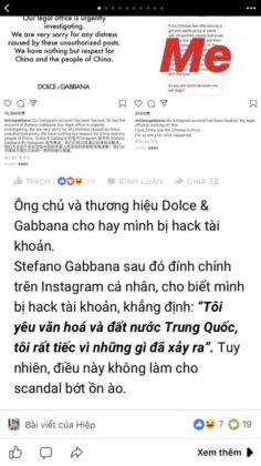 Ngày hôm qua trước sự kiện show diễn của Dolce & Gabbana tại Thượng Hải diễn ra, thì 1 tin nhắn của NTK đồng thời cũng là đồng sáng lập thương hiệu toàn cầu Dolce & Gabbana ông Stefano Gabbana được tung ra với nội dung tóm tắt là “CHỬI NGƯỜI Trung Quốc ngu và Tàu khựa BỐC MÙI NHƯ SHIT”.