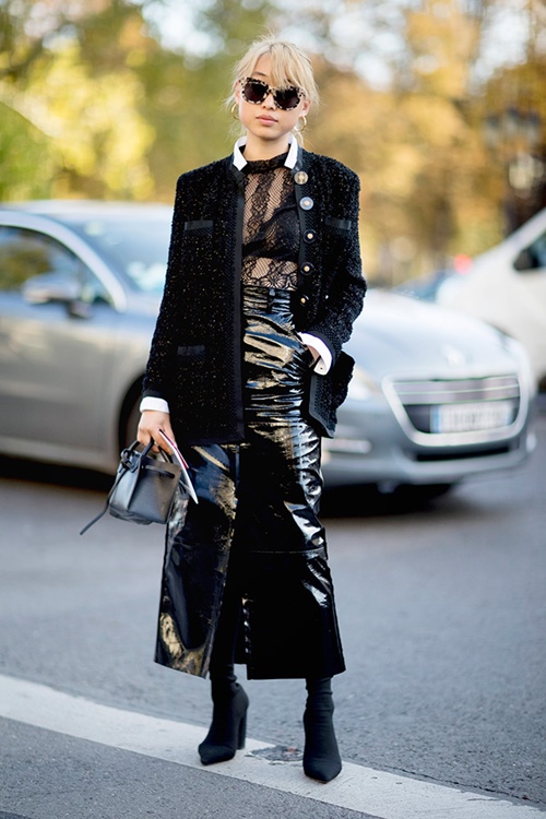 8. Biến bra thành một phần của bộ trang phục: Bộ đồ tông trắng đen của tín đồ trên sẽ trở nên nhạt nhòa, kém hấp dẫn hơn nếu không có phần áo bra tiệp màu với dây nịt, áo khoác và giày.
