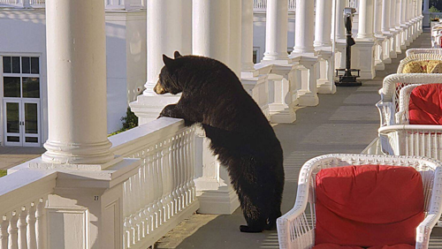 Sam Geesaman, nhân viên Omni Mount Washington Resort, kết thúc ca đêm vào 29/6 và dự định ngắm bình minh trên dãy núi White (thuộc bang New Hampshire, đông bắc Mỹ). Nhưng lúc đó, Sam ngạc nhiên khi thấy một con gấu đen trèo lên cầu thang và sục sạo thùng rác gần đó để tìm thức ăn.
