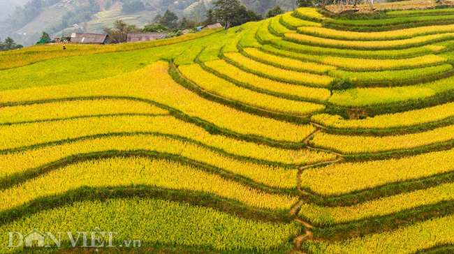 Mùa lúa chín, những thửa ruộng bậc thang chuyển màu vàng óng càng khiến cho du khách yêu mến vẻ đẹp bình yên và trù phú của nơi đây.