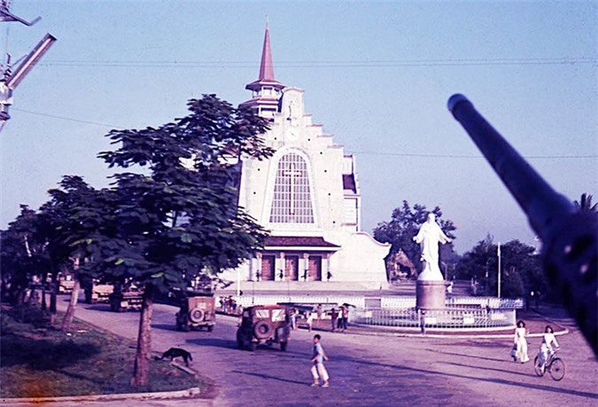 Nhà thờ nhìn từ một xe quân sự Mỹ, 1969. Ảnh: Robert and Linda Buckalew