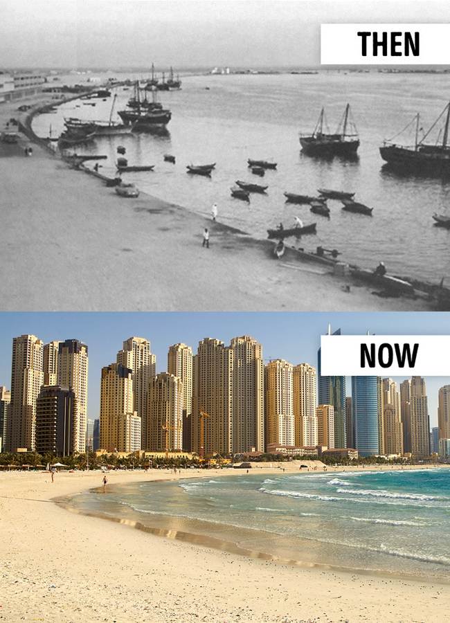 1. Dubai xưa kia chỉ là bãi biển đánh bắt cá hoang sơ giờ đã là thành phố sầm uất