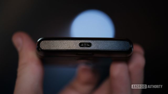 Cạnh dưới của sản phẩm là phần “cằm” với kích thước khá lớn, tương tự như thiết kế của Razr V3 trước đây. Motorola đã tích hợp trên phần “cằm” này cảm biến vân tay, thay vì sử dụng cảm biến vân tay trên màn hình như nhiều smartphone cao cấp khác hiện nay.