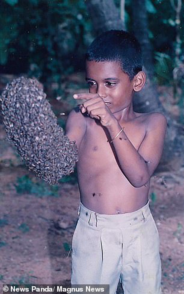 Chàng trai 24 tuổi người Ấn Độ, được biết tới với tên gọi Nature M.S, lại coi những con ong là "bạn thân" và cho biết không bao giờ coi chúng là mối đe dọa. Vốn là một thợ nuôi ong, Nature M.S thường xuyên để hàng nghìn con ong bám lên gương mặt mình.