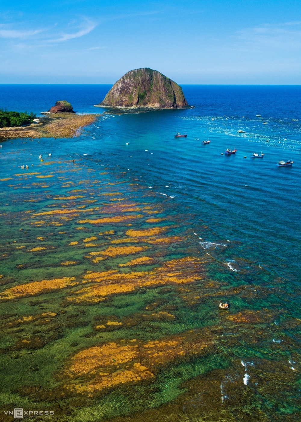 Hòn Yến thuộc xã An Hòa, huyện Tuy An, cách TP Tuy Hòa, Phú Yên khoảng 20 km. Người dân địa phương gọi là Hòn Yến vì ngày xưa có nhiều chim yến về làm tổ. Vùng biển nổi tiếng với các rạn san hô cạn, có nhiều loại hải sản tươi ngon như cá cơm, mực, cua và thương hiệu tôm hùm nuôi trong các lồng nằm dọc theo vùng bờ biển. Tháng 5 - 8 hàng năm là thời điểm ngư dân nhộn nhịp ra khơi Hòn Yến, dùng lưới vây đánh bắt cá cơm. Nhịp sống mưu sinh này trở thành đề tài quen thuộc dành cho người yêu nhiếp ảnh. Ảnh: VNE