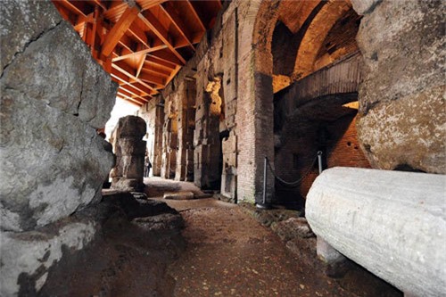 Đấu trường La Mã: Khách du lịch đi bộ trong khu Đấu trường La Mã, Rome. Đây là khu di tích mới được mở cửa từ tháng 10 năm ngoái để khách du lịch viếng thăm.