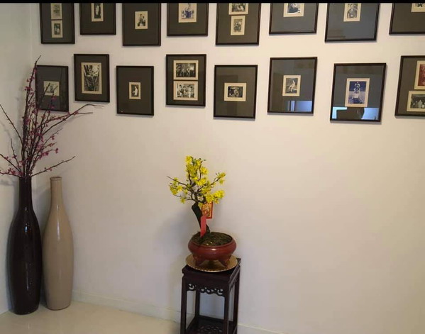 Nhà ông đơn giản nhưng rất nhiều ảnh kỷ niệm, album.