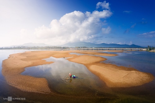 Người phụ nữ mưu sinh trên khu vực bãi ngang, gần cầu Lại Giang, xã Hoài Hương, huyện Hoài Nhơn, Bình Định.