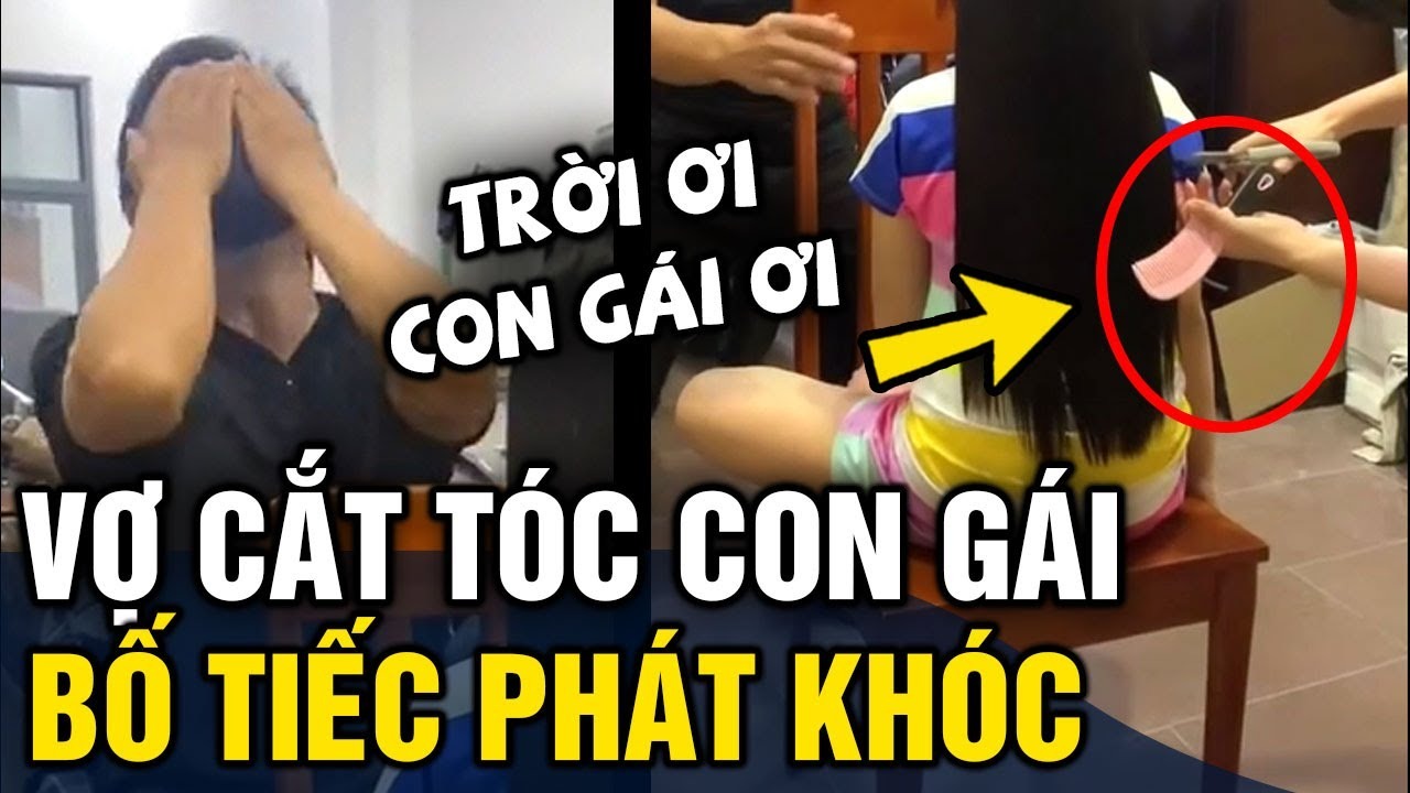 Bố tiếc nuối khi vợ cắt tóc cho con gái. Thấy mái tóc dài đẹp của con gái bị cắt từ từ, ông bố đứng ngồi không yên và liên tục than thở.